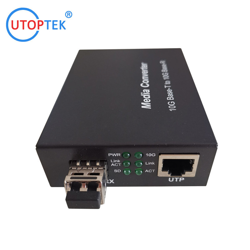 | UT-MC10G-SFP | 10G media converter, 1*RJ45+1*SFP port, External DC12V power supply |